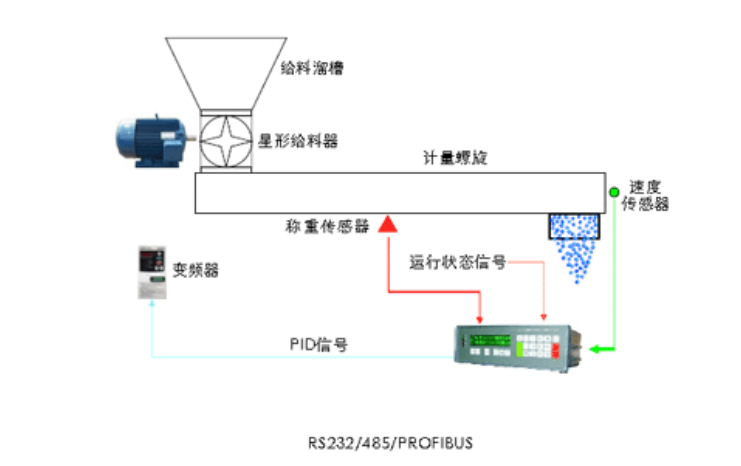 螺旋稱重定量給料機(jī)用于對(duì)散狀物料的定量給料,給料過程為螺旋旋轉(zhuǎn)連續(xù)給料,將來自于用戶給料倉或其他給料設(shè)備的物料輸送并通過稱重橋架進(jìn)行重量檢測(cè);同時(shí)裝于端部的測(cè)速傳感螺旋體進(jìn)行速度檢測(cè);被檢測(cè)的重量信號(hào)及速度信號(hào)一同送入稱重控制器進(jìn)行微積分處理并顯示以噸每小時(shí)為單位的瞬時(shí)流量及以噸為單位的累計(jì)量。